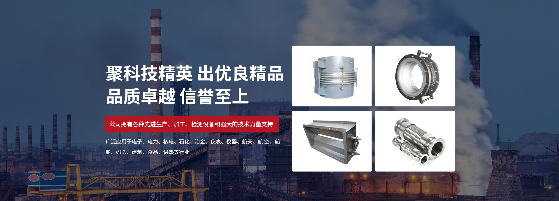 產(chǎn)品廣泛應(yīng)用于電子、電力、核電、石化、冶金、儀表、儀器、航天、航 空、船舶、碼頭、建筑、食品、供執(zhí)管等行業(yè),先后為數(shù)百家大型企業(yè)提供各種型號的優(yōu)質(zhì)補(bǔ)償器。
